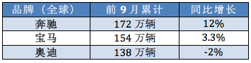 2017年走完了三个季度,奔驰品牌的全球销量为172万辆,领先第二名宝马品牌18万辆,可以说优势很明显了。而奥迪还是安心当着老三。
