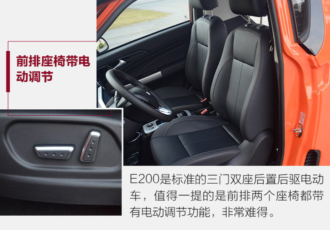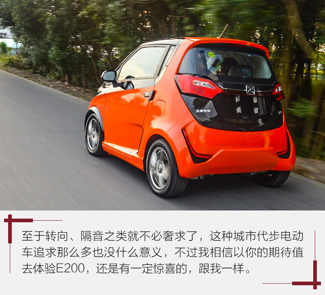 后置后驱纯属调侃,这种车注定跟操控性和漂移无关,不过电动机直接驱动后桥确实能带来更加直接的传动效率,动力损耗更小,配合电动机更直接的扭矩输出,在城市里中低速区间驾驶还是挺有趣的。新款众泰E200作为年度改款车型,其实变动不算大,主要是微微优化调整了外观内饰,并且增加了许多配置,竞争力提升了不少。