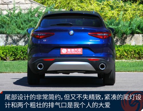 看到了倒三角进气格栅就等于看到了阿尔法罗密欧的车标,辨识度极高的前脸设计让人一看就知道这是一台阿尔法·罗密欧,当然这台车在引入中国的时候也引发了一场讨论:牌照应该放在哪边?通过查阅相关法案,牌照架允许放在副驾驶侧,这样的话更方便路人查看,所以引入国内的Stelvio也就把牌照架放在副驾驶一侧了。