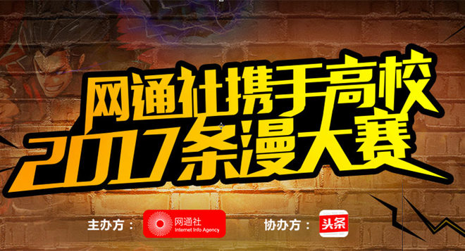 为顺应时代的需要,响应粉丝们的呼声,以及为广大用户和专业机构提供更多有深度、有趣味、有营养的条漫作品,网通社在条漫领域将举办一场盛大的条漫群英会。2017年11月1日,网通社携手北京多所一流大学的动漫学院举办“首届条漫大赛”,并由今日头条协办。活动包含一个月的线上征集期,半个月的知名动漫KOL斟酌评选期,于12月20日公布获奖作品。