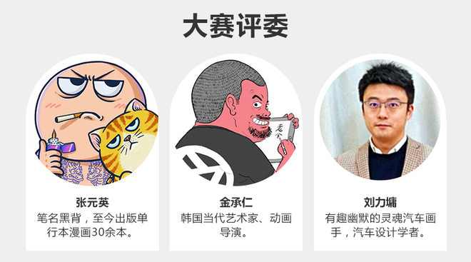 本次条漫大赛评委主要有:《黑背漫画》 创始人兼首席创作师——张元英、韩国当代艺术家与动画导演——金承仁、《大炮评车》创始人——刘力墉等。这就意味着各大高校的参赛作品会被上述大神争相传阅,获得宝贵的意见指导!