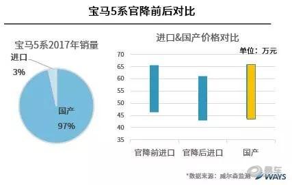 以宝马5系为例,进口宝马5系下调后的进口价为42.99-60.99万元,而国产车型价格为43.69-65.99万元,两者重叠度已经很高。其国产产品价格也将面临调整。