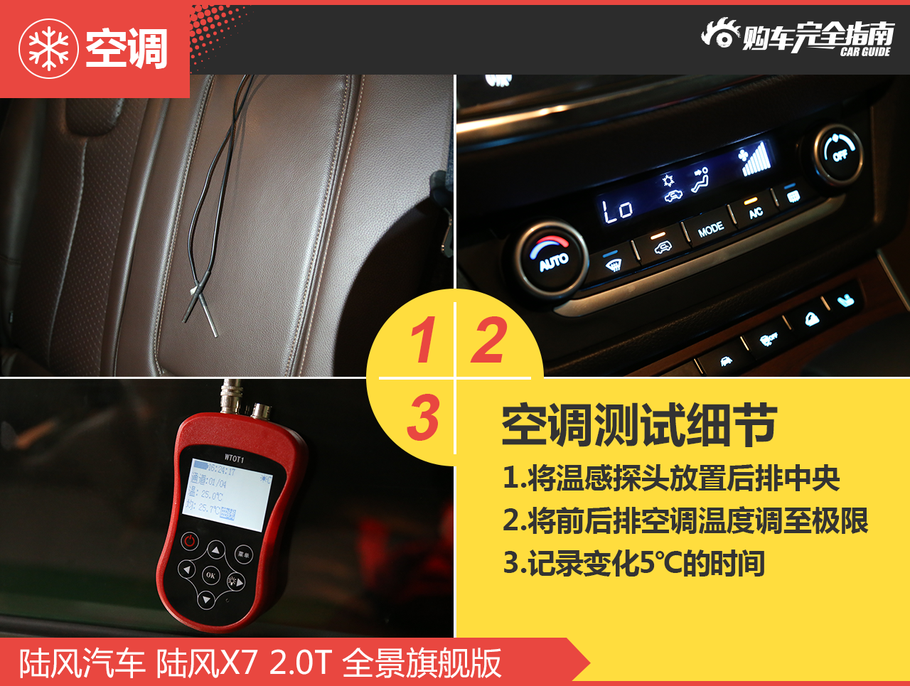 陆风X7的空调效率还很高效的,车内降低5℃速度只需要1分27秒的时间,得到4分的成绩也是在同级较为突出的。
