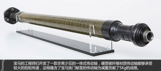 也许你会觉得一根轴不算什么,但就编辑目前所知,原厂车配备碳纤维传动轴的厂商应该只有宝马一家,而以前,这项技术一直掌握在像美国PST这样的传动轴制造商手里,你若真的想改装碳纤维传动轴的话,只有买来车之后再花高价从商家手里求购才行。更重要的一点,从技术趋势来说,以往碳纤维材料绝大多数用于车身构件(下面也会讲到),把它用在车辆核心的动力-传动系统上面,宝马也算是迈出了汽车厂商们的第一步。