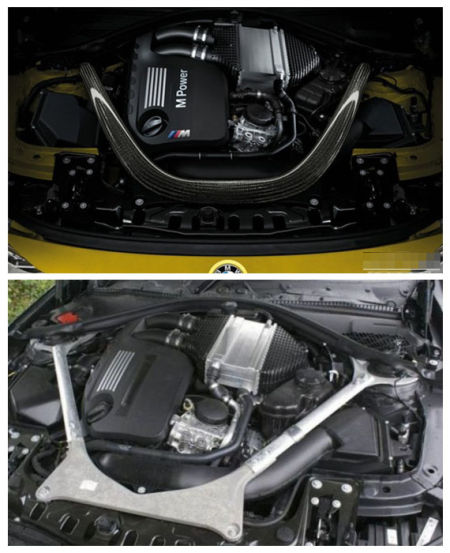 公认的一点,在保证车辆安全性的前提下,民用车辆一定是越轻越好。可以说,新的宝马M3/M4是在保留原有的精准调校的基础上,通过增压化实现动力的提升,再通过毫无保留的轻量化改进,使其操控的敏捷和灵活更进一层,同时对油耗、排放也有好处。特别是原厂碳纤维传动轴、引擎舱加强臂这些,都是我们看不到的。不光如此,诸如全铝副车架、铝合金差速器壳体、悬架控制臂等等,所有的一切,对M3/M4来说都是一种内在的提升。单纯靠大排量、大马力来提升驾驶乐趣,简单粗暴,但绝非上上之策;真正在车身上下功夫,才体现出一家厂商的内在实力和诚意。