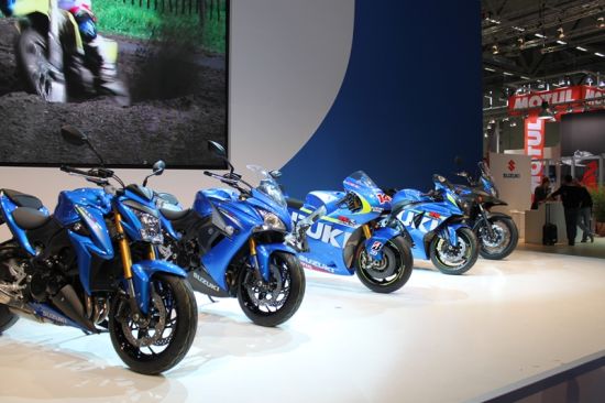 德国科隆车展上铃木公司祭出了旗下跑车、街车、巡航车、越野车、探险车和绵羊车等等多元化的新车款,所属展位面积相当庞大,展现出国际一线摩托厂家的实力。