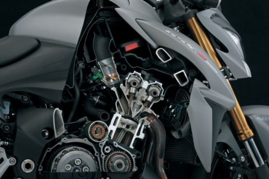 新款GSX-S1000引擎脱胎于2005款GSX-R1000,重新改进并调校,让车辆拥有截然不同的动力输出特性,保持并列四缸双凸轮的设计,利用不同的凸轮曲线,来重新定义,让GSX-S1000的动力更符合曲折的道路与都市街道的骑乘。GSX-S1000的行车电脑在不同动力模式下有着更多的操控乐趣,利用车辆同时监测轮速、曲轴、节流阀与齿轮的位置,判定动力是否造成车辆的打滑现象,并且采用把手左侧的开关进行调整,让电脑拥有不同阶层的控制效果。
