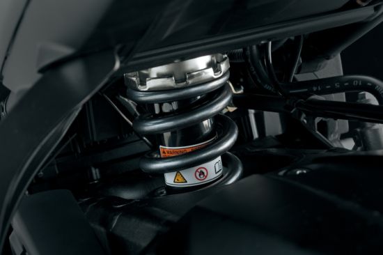 由于高把手设计,让骑乘姿势相对较为直立,长途巡航下来也能够减低疲惫感,配合上加长行程的悬挂设计,更为舒适。采用43mm正置式前减震,行程达150mm,原厂设计上预载部分也提供了五段来针对骑士的需求进行调整,而且650XT后避震的预载可直接从侧面的旋钮调整,不需要工具, 用手转即可方便骑士随时调整高度以适应不同路况。