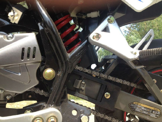后减震采用内置气囊,填充高压氮气,可调式档位,可满足不同的路况使用。