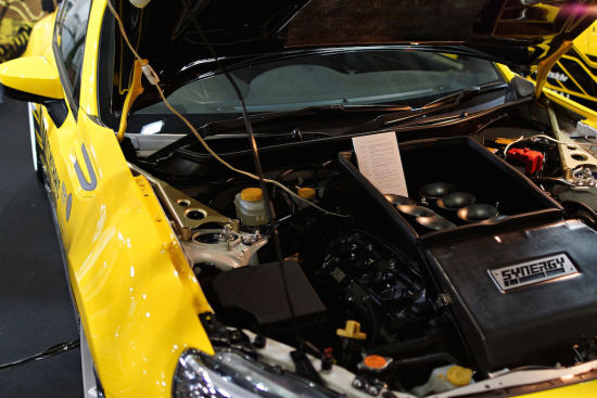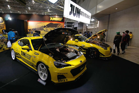 在日本东京改装车展(Tokyo Auto Salon )上展出了一辆斯巴鲁BRZ改装跑车。(BRZ是斯巴鲁与丰田合作研发的成果,属于丰田86的姊妹车,该车采用水平对置2.0发动机和前置后轮驱动布局。)