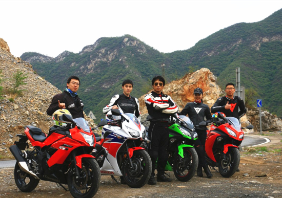 在摩托车领域中一提到“忍者”,一定会让人想到川崎、经典绿色甚至是-10(ZX-10R)或-6(ZX-6R)。随着川崎Ninja 250(小忍者)在中国市场上的正式售卖,众多进口运动车款逐渐走入中国摩友的视线,进口品牌的“跑车”、“趴赛”将不再是我们中国摩托车爱好者一个遥不可及的梦,同时也预示着“提心吊胆的水车”时代也即将过去。六眼魔神(ZX-14R)、隼(GSX-1300R)、阿姨(YZF-R1)、火刃(CBR1000RR)固然是日本四大摩托品牌的“当家花旦”,但不可否认的是它们和大部分运动摩托车爱好者的距离实在是太远了,主要原因是价格,那么进口入门级运动摩托车必然成为热门车款。目前国内可以买到正式进口的入门级运动车型分别是:川崎Ninja 250R、本田CBR300R和刚刚入市的川崎Ninja 250SL。在这里,新浪摩托大培子和四位来自sina-moto微信的摩托车爱好者联手为大家带来,川崎Ninja 250、本田CBR300R和川崎Ninja 250SL的“体验性”评测(川崎Ninja 250SL首测)。