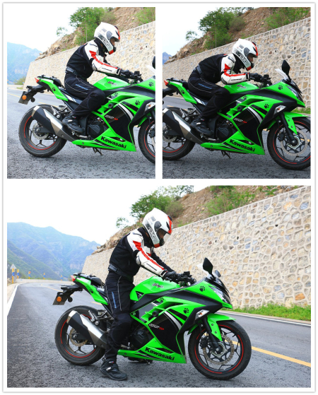 月月:坐高略高于Ninja 250,我只能单脚着地。(这个对于行家自然是不值一提的,也不是应有的关注点,但是对于初级摩托驾驶者这个貌似都会比较在意,会增加对车辆的信任感和个人驾驶的自信心)。接近标准跑车的姿势,坐高把低的设计,让我坐上它就自然地进入“战斗状态”。既然坐姿趋于标准跑车,那坐姿就一定舒服不了。个人特别喜欢Ninja 250SL油箱线性设计,弧度和宽窄可以让我很舒适的将两腿贴合油箱从而轻松夹持,增强和摩托之间的整体契合感。