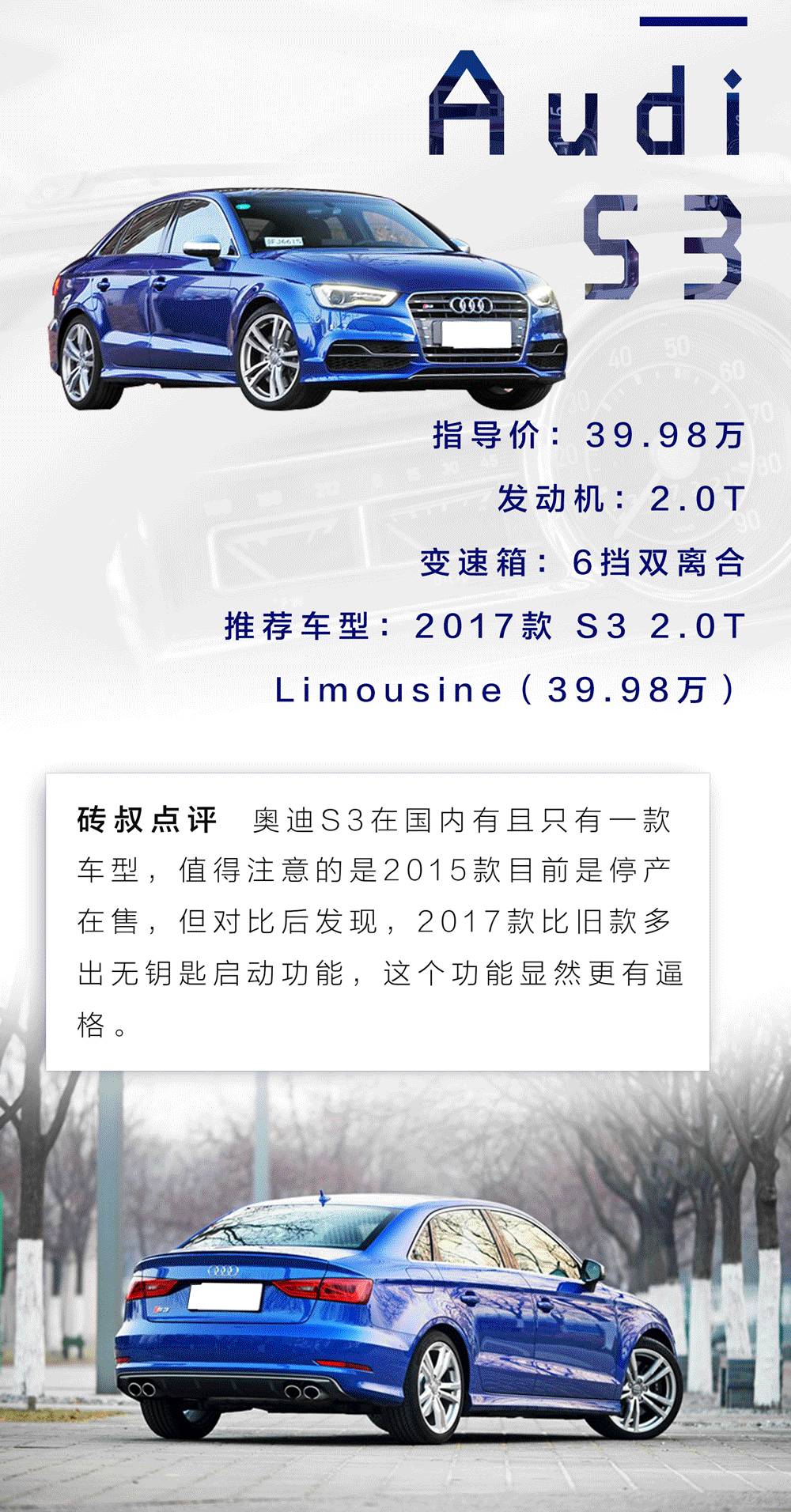 随着豪华品牌的国产化和车型丰富度的不断提高,现在40万内想要买到一款空间大、配置丰富、动力足的豪车已经不是什么难事了,诸如奥迪A4L、宝马3系Li和奔驰C级等都是其中的典型代表。但如果并不想随大流,认为40万内依然只需爱情,不谈面包,那么大可选择以下这几款车型,虽然它们空间可谓捉襟见肘,但胜在拥有不俗的动力表现,同时也非常个性。