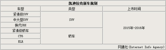 根据凯迪拉克官方规划,至2016年产品线将增加至10款车型。凯迪拉克全球总裁约翰·德·尼琛在接受媒体采访时表示:我们正在酝酿更多新车,包括规格超过CT6的新旗舰车、中小型SUV、第二代电动车和跑车等多款新车。同时网通社从相关渠道了解到,其中旗舰级轿车CT6将于明年第四季度上市,以及ELR纯电动车,未来还将推出紧凑级SUV、中大型SUV以及换代SRX,产品线进一步丰富。