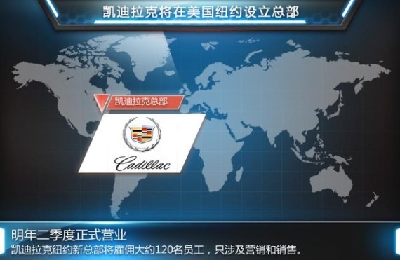 凯迪拉克新总部将设在美国纽约毗邻曼哈顿Soho地段,预计2015年第二季度正式营业。通用此举意欲将凯迪拉克将从通用系中剥离出来,成为一个独立的业务单元。约翰·德·尼琛也表示:公司希望拉开凯迪拉克品牌和其他品牌之间的距离。他透露,纽约新总部将雇佣大约120名员工。未来凯迪拉克总部只涉及营销和销售,研发人员仍将留在底特律。