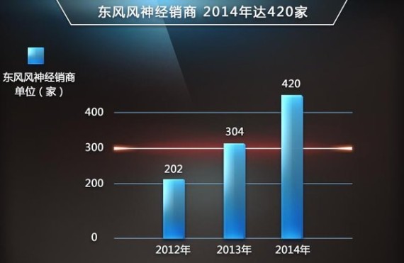 在发力新车的同时,东风风神还将不断扩充经销商网络。根据东风风神规划,今年经销商数量将从2013年的304家增至420家,并最终到2017年将形成530家经销商的规模。此外值得一提的是,由于在过去三年中风神没有新品投放,直接影响到了企业之前所规划的2012年-2016年挑战100万辆累计销量的核心战略目标。对此,东风风神总经理李春荣表示:“五年计划中风神品牌累计销量要完成70万到80万辆的目标是可以期待的。” (网通社 2014年10月9日 北京报道)