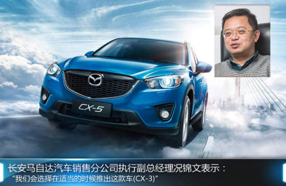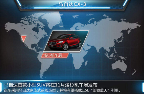 在马自达成功推出采用全新创驰蓝天技术的CX-5、Mazda3昂克赛拉、Mazda6阿特兹之后,在SUV领域又将迎来新的成员。网通社近日从海外媒体autobild了解到:马自达首款小型SUV(CX-3)将在11月洛杉矶车展中发布。针对该车会否引入国内的问题,长安马自达汽车销售分公司执行副总经理况锦文此前在接受网通社采访时表示:“我们会选择在适当的时候推出这款车(CX-3)。”从目前的情况来看,CX-3最早有望明年在国内上市。