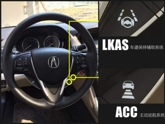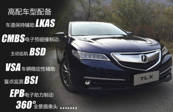 新车还增加了车道保持辅助系统(LKAS),可以较为清晰的辨别路面的虚实线,自动修正方向盘。电子预碰撞制动系统(CMBS)及主动巡航系统(ACC)也是该车配备的安全技术,三者功能的结合可达到“无人驾驶”的状态。此外,车辆稳定性辅助系统(VSA)、盲点监测系统(BSI)、电子助力制动(EPB)及360°全景摄像头系统也均有体现在TLX高配车型上。