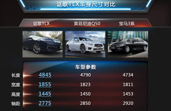 TLX使用新平台打造,其车身尺寸分别为4845mm/1855mm/1445mm,相比同级别英菲尼迪Q50及宝马3系则更修长。虽然2775mm的轴距在同级别中并不占优势,但是内部空间表现良好,后排座椅还可按4:6比例分开折叠或直立,进一步提升后备箱储物的灵活性。此外,中央储物空间、后备箱的空间更大,侧门储物格的数量也更多。(网通社 2014年10月30日 北京报道)
