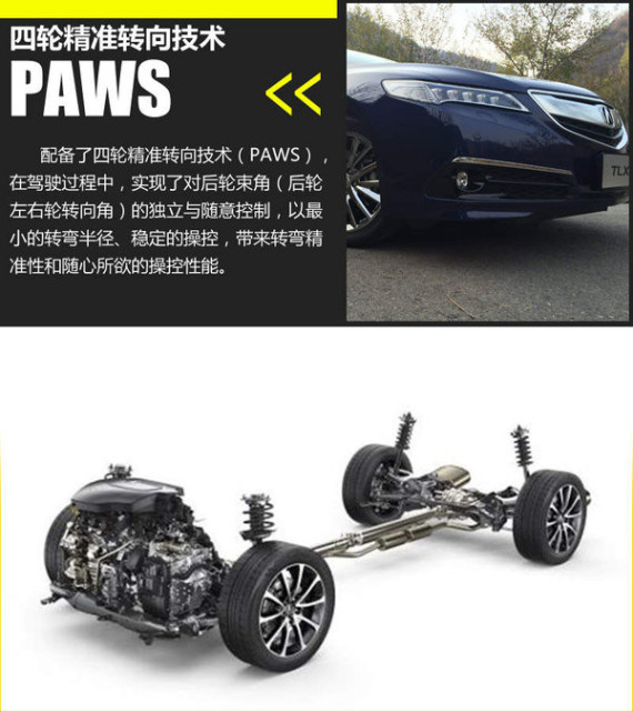 同时,TLX还配备了四轮精准转向技术(PAWS),在驾驶过程中,实现了对后轮束角(后轮左右轮转向角)的独立与随意控制,以最小的转弯半径、稳定的操控,带来转弯精准性和随心所欲的操控性能。在车辆并线时,可做到前后轮方向一致;车辆弯道加速时,横向滑移角和转向角相比以前均分别提升,转向更为灵敏。当车辆处于高速状态下行驶时,搭载该技术的TLX可以做到直接响应,减震并平滑行驶。车辆泊车及入库也更为精准。