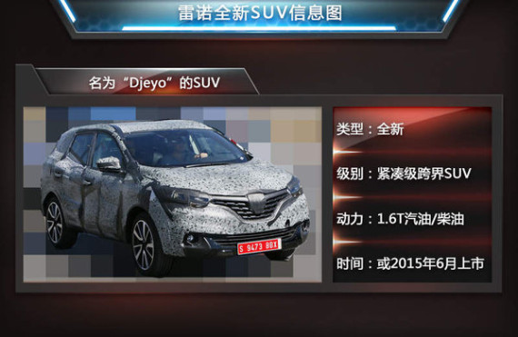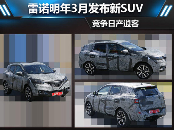有望在明年三月推出的雷诺全新SUV车型,车身尺寸属于紧凑级跨界SUV,新车将与科雷傲同平台打造,但是与雷诺科雷傲相比定位会更低。在推向市场后,其竞争对手也将指向同门师兄日产逍客。同逍客相比,法系车型、全新设计、更充沛的动力这些卖点都使新车拥有很强的竞争力。