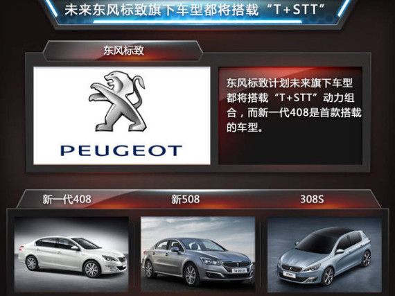 东风标致推出的T+STT动力组合,开启了标致旗下全系车型动力总成更新换代的大幕,而首款搭载“T+STT”动力组合的车型为标致全新408车型。新一代408在东风标致的产品线中起到承上启下的作用,这次更新换代最大的看点就是技术更新。据东风标致总经理李海港介绍,新一代408是东风标致十年磨一剑、“技术升蓝”的集大成者,应用了东风标致几年来诸多更新技术成果。
