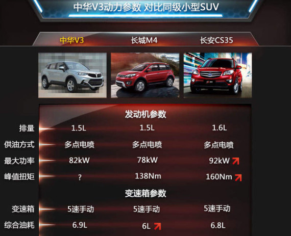 按照华晨中华的规划,中华V3将定位为一款都市时尚A0级SUV,这也是中华品牌继V5倾力打造的第二款SUV。从已知的整车尺寸看,中华V5的长宽高分别为4200·1790·1600mm,轴距为2570mm。与国内市场同级热销的长城M4、长安CS35相比,中华V3拥有更加修长的车长和轴距,出众的整车尺寸将为消费者提供更加宽裕的车内空间。