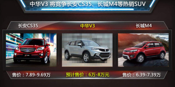 在车型售价方面,按照目前国内小型SUV的市场定价来看,中华V3的竞争对手售价普遍在6万至8万元的售价区间内。若想在小型SUV的细分市场中占有一席之地,除了拥有良好的产品竞争力外,产品的售价将起着决定性的作用。另据中华汽车内部人士透露:中华V3的预计起售价为6万元。(网通社 2014年11月6日 北京报道)