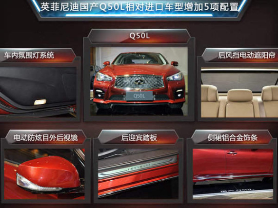 2014年4月,英菲尼迪Q50正式登陆中国市场,成为了全球首款搭载线控主动转向系统的车型。在之后举办的成都车展上,国产英菲尼迪Q50L正式首发亮相,并且在Q50的基础上新增了五项配置。同时作为首款国产车型,Q50L在东风日产专注生产中高端车型的襄阳工厂投产。