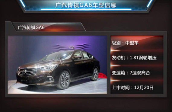 GA6拥有强力的动力组合。1.8T涡轮增压发动机,最大输出功率为130千瓦,最大扭矩为242N.m;与发动机匹配的是一台7速双离合变速器。该车也将成为广汽传祺旗下首款采用7速双离合变速器车型。