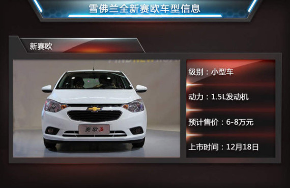 雪佛兰赛欧自2000年进入中国,已有整整15年的历史,目前已累计销售超过130万辆。此前,第三代赛欧已经在广州车展亮相,新车将于12月18日正式上市销售。新赛欧三厢版的长宽高分别为4300/1735/1504mm,轴距为2500mm。相比现款车型4249/1690/1503mm,轴距2465mm的车身尺寸有全面提升,给予车内更大的乘坐空间。