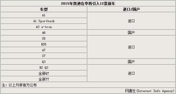 奥迪明年将在华推12款新车 包括两款换代产品