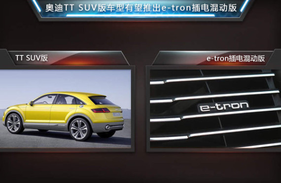 此前全新一代TT车型已正式发布,并相继推出了诸如敞篷版、性能版等多款衍生产品,而随着目前各级别市场的细分化,奥迪还有望基于TT推出更多衍生车型,其中包括TT的SUV版本概念车型、TT offroad concept以及插电混动车型。对此奥迪管理董事会成员哈肯贝格表示:未来奥迪每一个产品系列都会推出一款插电式混合动力车型。