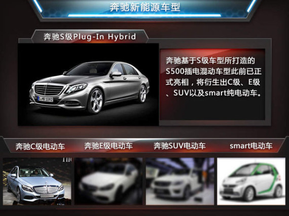 奔驰基于S级车型所打造的S500插电混动车型此前已正式亮相,并有望在明年引入国内市场销售,而除此之外其在未来有望量产上市的新能源产品中,还将覆盖奔驰旗下包括C级、E级以及SUV车型在内的多种产品,并且smart也将推出纯电动车。