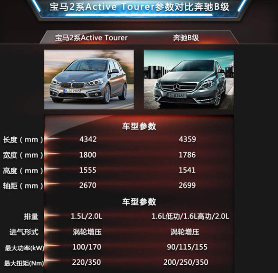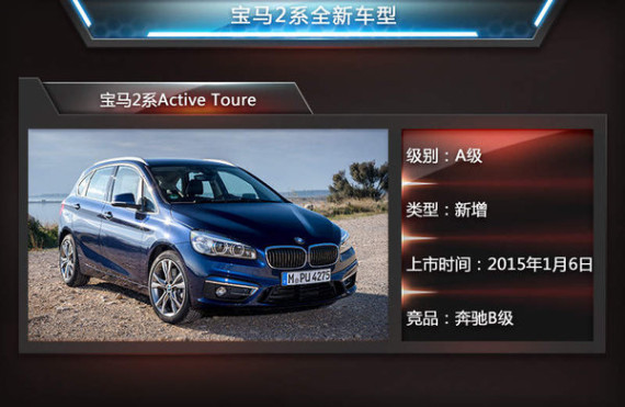 作为宝马品牌的首款前驱车型,2系Active Tourer于今年3月的日内瓦车展上完成了全球首秀,其定位于运动旅行车。新车引入后首推218i版本,搭载宝马最新的1.5T三缸发动机。目前在豪华品牌紧凑级休旅车市场中仅有奔驰B级一款车型,未来宝马2系运动旅行车推出后将直接与奔驰B级展开激烈较量。