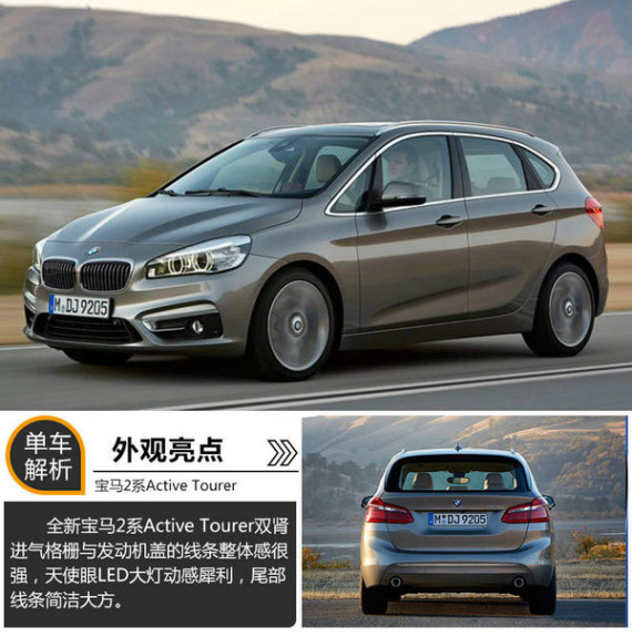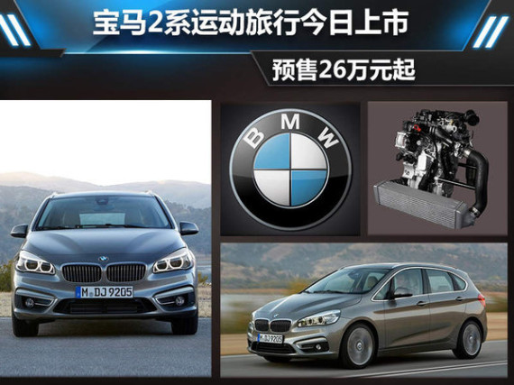 宝马去年在华发布了全新紧凑型MPV宝马2系Active Tourer,它既是宝马品牌旗下第一款前驱车型、它是第一款搭载三缸汽油发动机的车型。新车车内空间灵活多变、动力充沛且拥有良好的燃油经济性,其外观动感、线条美观延续了宝马的运动风格。近日,宝马中国发布:宝马2系Active Tourer将在今日正式上市,新车将搭载一台1.5T三缸涡轮增压发动机以及直列四缸涡轮增压发动机,预售价格区间在26-40万元左右。