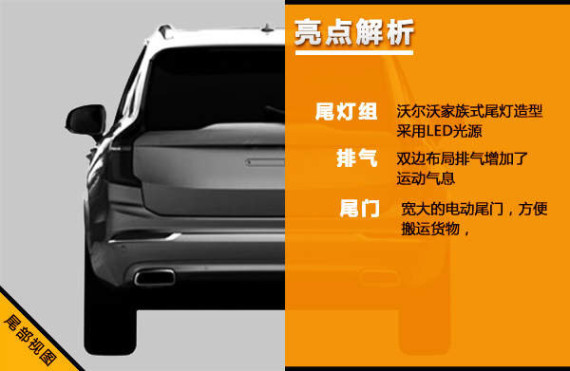 尾部造型保持了沃尔沃家族式设计,其独有的LED分体式尾灯造型让人过目难忘,与前大灯“雷神之锤”形成了首尾呼应的效果。车尾下部的雾灯、保险杠、扩散器以及双边共两出排气均进行了镀铬处理,令车辆尾部整体造型更具质感。