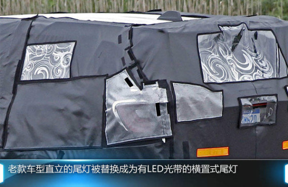 外观方面,可以看出新款大捷龙的造型将会更加圆润,前大灯将搭配LED日间行车灯光带。车尾变化则更大,老款车型直立的尾灯被替换成为有LED光带的横置式尾灯。预计新款大捷龙将会采用克莱斯勒的家族设计语言,类似于新款克莱斯勒300C的设计风格。