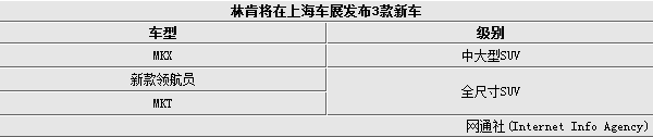 按照林肯在华发展规划,将在2016年前在华引入5款新车,目前林肯已在国内市场推出紧凑型SUV——MKC和中型轿车MKZ。据悉,在4月份的上海车展期间林肯将发布3款新SUV车型,分别为中大型SUV MKX、全尺寸SUV MKT和旗舰SUV新款领航员,其中MKX有望于今年8月正式在国内上市,新款领航员也将在年内上市。届时林肯在国内市场的SUV产品布局将覆盖到紧凑型、中大型及全尺寸SUV细分市场,其在国内豪华车市场的竞争力也将得到提升。