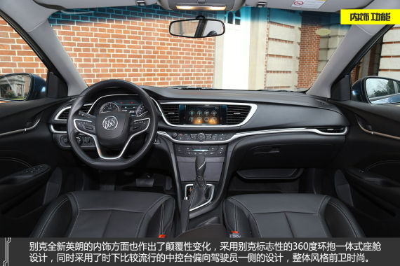 内饰方面,全新英朗具有别克标志性的360度环抱一体式座舱设计,整体极具档次感:别具创意的风口银色饰圈、内门把手与饰条一体化设计、钢琴铐漆表面、精致双缝线及皮革滚边工艺等均彰显出车辆的质感。