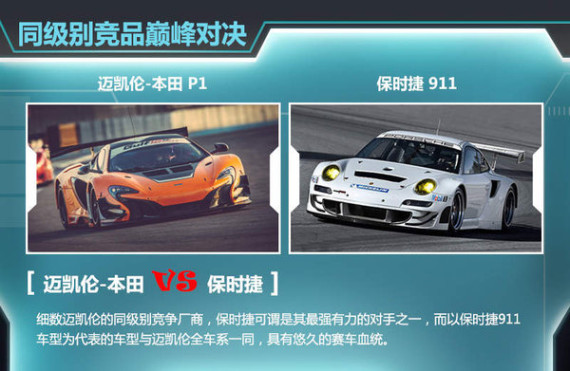 在同级别竞品中,保时捷作为具有多年赛场经验的厂商,其麾下911车系则与迈凯伦P1分别代表了其品牌最高造诣。而以上两家厂商不仅在赛事中相互逐鹿,并且在民用超跑领域也处于白热化的竞争态势。而在两者的对比中,搭载混动系统的迈凯伦新车将凭借其F1动能回收系统一具向保时捷等品牌发起猛烈进攻。
