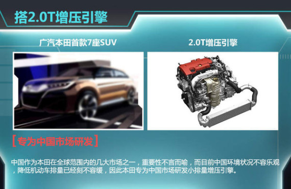 本田此前在中国媒体大会中共发布了1.5L、2.4L、3.0L三款自然吸气直喷发动机,以及针对中国市场研发的1.0T、1.5T、2.0T三款涡轮增压发动机,发动机产品序列得到进一步完善。采用1.5T直喷增压发动机的全新一代思域已在纽约车展中正式发布,而本田CR-V也可能与全新一代思域共享该款发动机,那么定位更高的全新7座SUV将有可能搭载2.0T增压引擎。