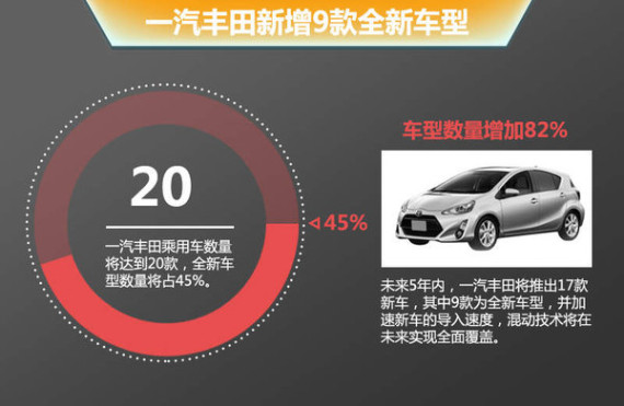 一汽丰田在增速放缓的国内市场环境下,表现较为稳定,2014年全年完成销售58.6万台,占丰田在华累计销量的56.9%。为了获得更多市场份额,一汽丰田此前公布了“未来5年内,将推出17款新车,其中全新车型9款”的中期发展规划,未来一汽丰田车型数量将增加至20款,提升82%。鉴于国产普锐斯征战国内新能源市场的多年经验,以及一汽丰田将在新车型推出方面持续发力,那么两厢版普锐斯有望落户一汽丰田渠道,届时丰田在华混动车型阵容将更为壮大。