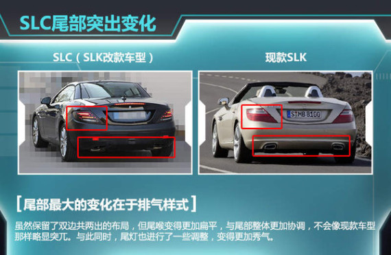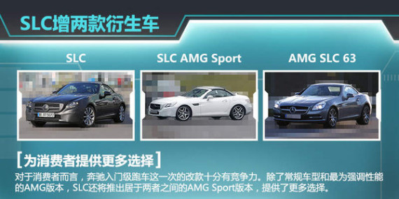 外观上的变化对于笔者而言最为满意的就是排气尾喉样式的变化了,全新的造型让SLC更加动感与美观。至于前脸缺失的棱角到底是好是坏,对于消费者而言肯定是仁者见仁智者见智。下面让我们一起来看看车型种类的变化。