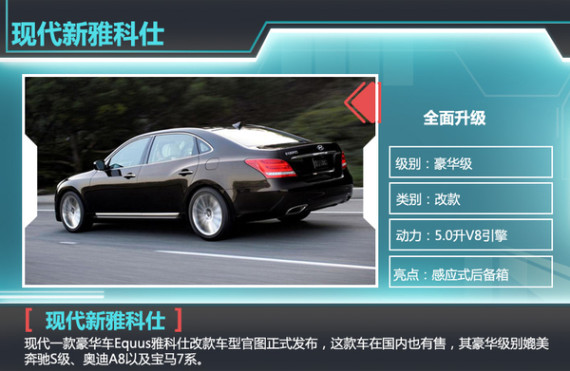 提到豪华车人们首先想到的一般都是奥迪、宝马,奔驰等车型,对于来自韩国的现代汽车人们固有的思维就是现代生产中级或入门级车居多,而豪华车则是少有听闻,日前,芬兰媒体worldcarfans获悉,现代一款豪华车Equus雅科仕改款车型官图正式发布,这款车在国内也有售,其豪华级别媲美奔驰S级、奥迪A8以及宝马7系。