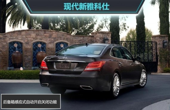 据现代官方透露,全新雅科仕顶配版车型后备箱采用了感应式开启关闭功能,驾乘者裤袋里或随身携带的钱包里有钥匙时只需要站在距离后备箱几英尺的地方几秒钟后备箱就会自动打开,这比其它拥有此功能的竞争车型需要抬腿靠近感应器实现开启关闭功能要方便多了。