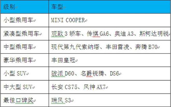 获奖车型介绍