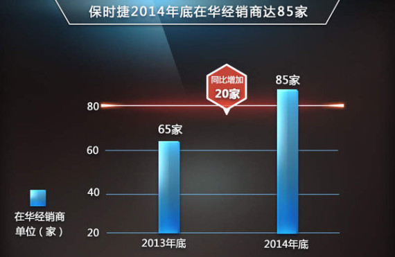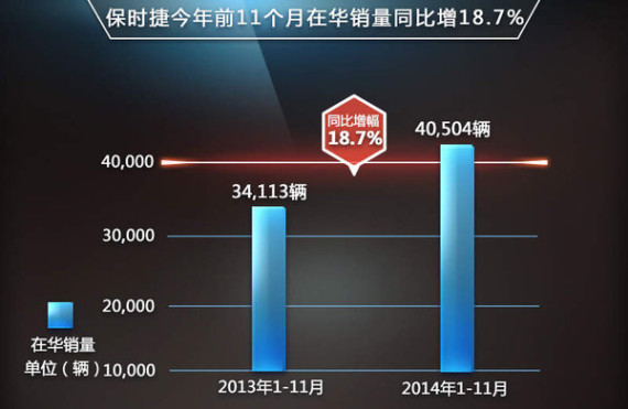 保时捷中国在今年的市场表现总体仍处在持续上升的时期,其中1-11月份新车交付量为40,504辆,同比去年增长18.7%,并且大幅超过2013年全年34,113辆的总销量。在经销商网络方面,根据保时捷品牌在华发展规划,今年底经销商将由2013年底的65家增加至85家,2014年全年增加20家经销商,并且这个数字会在明年继续提升,到2015年底有望突破100家。