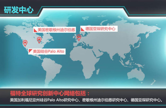 全新的Palo Alto研究与创新中心将成为福特全球研究创新中心网络的新成员,投入运营后将进一步完善福特全球研发中心布局。福特创新中心网络还包括位于密歇根州迪尔伯恩研究中心——致力于先进电子技术、人机交互、材料学以及大数据分析;以及位于德国的亚琛研究中心——主要研究下一代动力总成系统研究、驾驶辅助技术和主动安全系统。