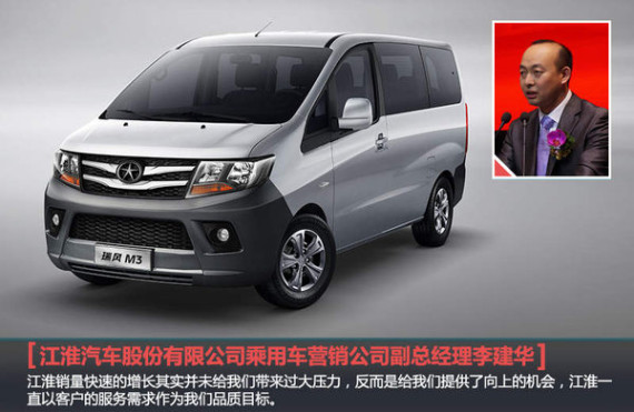具有市场竞争力产品对于达到销量预期值有着直接的关系,为此,江淮品牌2015年新车投放以及现款车型的换代工作已全面展开。据统计,年内江淮将向市场投放5款车型,值得一提的是,5款车型中包含MPV/SUV/新能源车型/轿车,车型范围覆盖十分广泛。其中重磅MPV车型瑞风M3以及第二代瑞风S5都已正式上市,余下车型也将在年内陆续推出,推新速度的加快也侧面体现出江淮品牌对实现30万目标的底气所在。